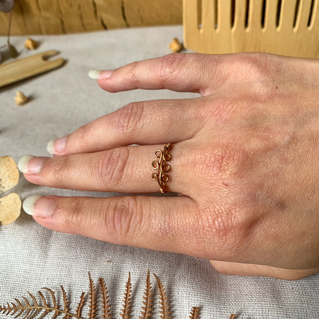 Chaque bague est façonné à la main avec du fil de cuivre, elle inspire élégance, puissance et sobriété.