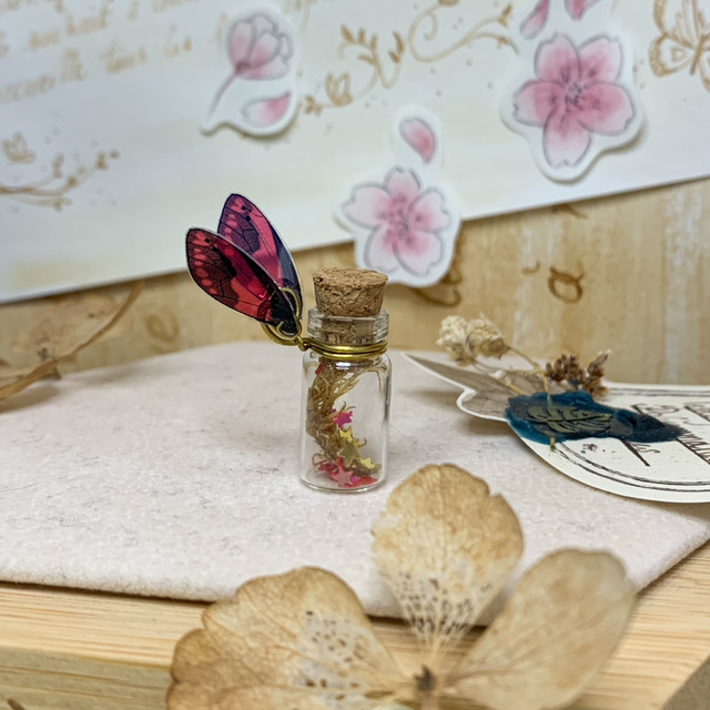 Depuis 2017 dans les rayons de la boutique du Bois des Fées, parmi les potions et les ingrédients magiques posés sur les étagères, se trouvent ces jolies fioles féeriques : de petites merveilles emplies de végétaux ou autres trésors glanés dans mes balades, et surmontées d'Ailes de Fées. Ces fioles ne sont pas seulement de simples objets de décoration, mais renferment également les secrets magiques de chaque lieu de récolte.