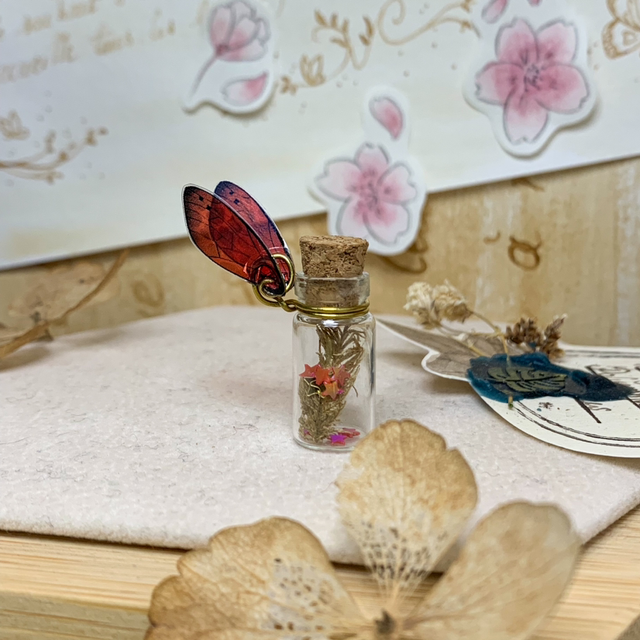 Depuis 2017 dans les rayons de la boutique du Bois des Fées, parmi les potions et les ingrédients magiques posés sur les étagères, se trouvent ces jolies fioles féeriques : de petites merveilles emplies de végétaux ou autres trésors glanés dans mes balades, et surmontées d'Ailes de Fées. Ces fioles ne sont pas seulement de simples objets de décoration, mais renferment également les secrets magiques de chaque lieu de récolte.