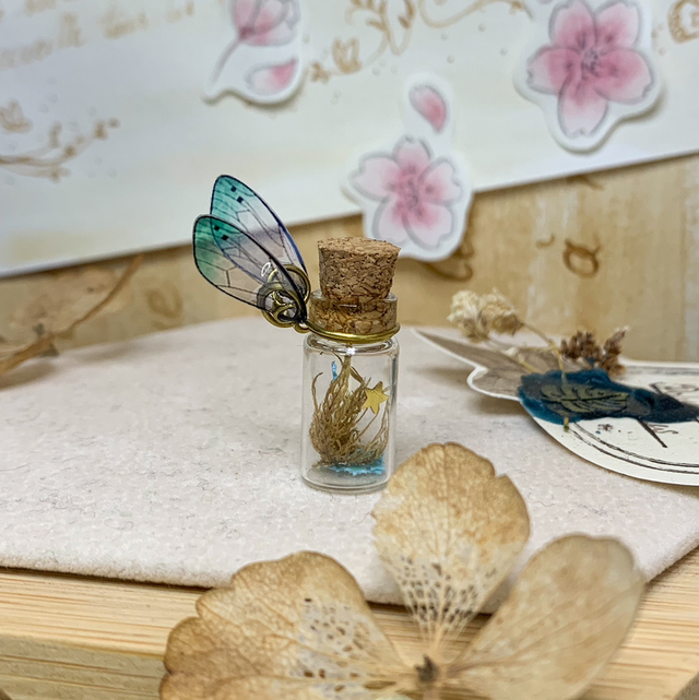 Depuis 2017 dans les rayons de la boutique du Bois des Fées, parmi les potions et les ingrédients magiques posés sur les étagères, se trouvent ces jolies fioles féeriques : de petites merveilles emplies de végétaux ou autres trésors glanés dans mes balades, et surmontées d'Ailes de Fées. Ces fioles ne sont pas seulement de simples objets de décoration, mais renferment également les secrets magiques de chaque lieu de récolte.