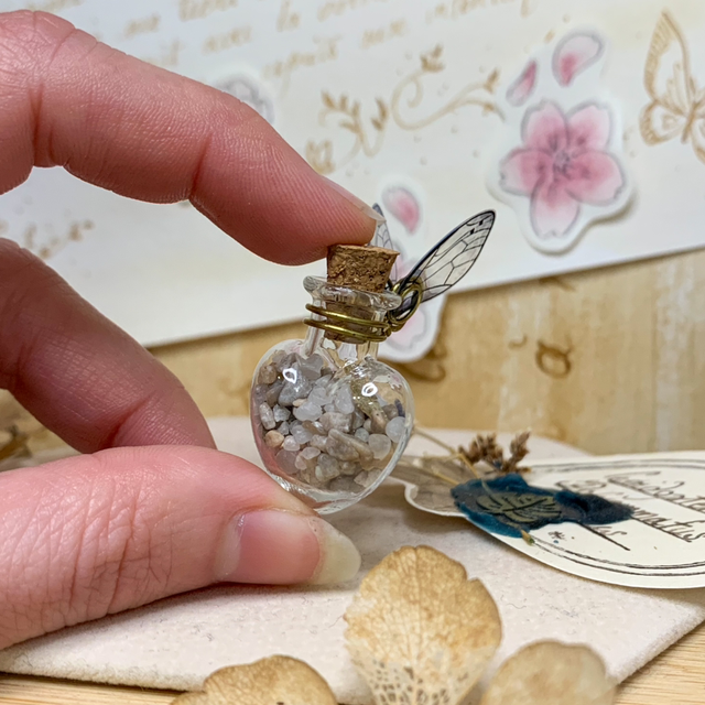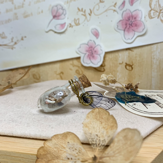 Depuis 2017 dans les rayons de la boutique du Bois des Fées, parmi les potions et les ingrédients magiques posés sur les étagères, se trouvent ces jolies fioles féeriques : de petites merveilles emplies de végétaux ou autres trésors glanés dans mes balades, et surmontées d'Ailes de Fées. Ces fioles ne sont pas seulement de simples objets de décoration, mais renferment également les secrets magiques de chaque lieu de récolte.