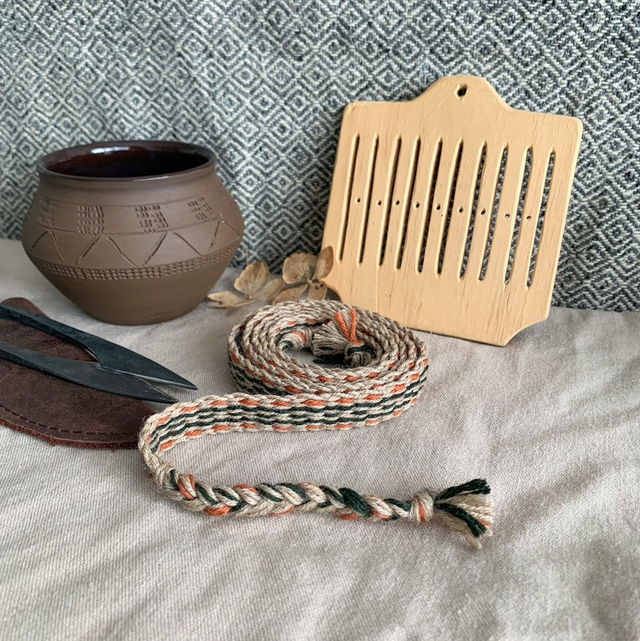 Dans une autre tranche de l’Histoire je suis Likke Jorgendottir, une artisane norvégienne vivant au 9ème siècle. Dans mon village scandinave je tisse à la main des cordons, galons, et autres articles historiques.