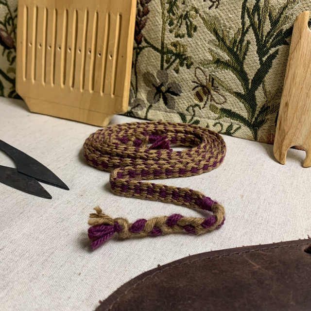 Ce galon tissé est composé de fils de laine 100% mérinos, il mesure 1m60.