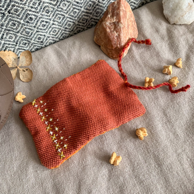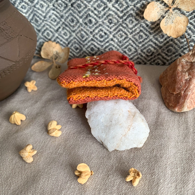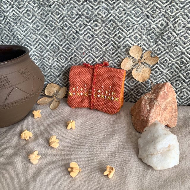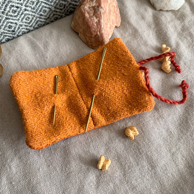 Ce porte aiguille est entièrement cousu à la main, tissu de laine, fil de lin.