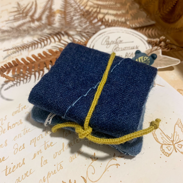 Ce porte aiguille est entièrement cousu à la main, tissu de laine extérieur et intérieur.