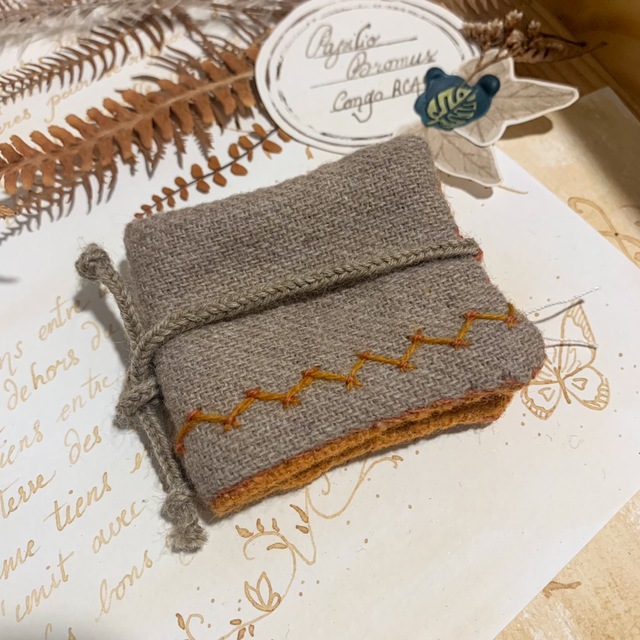Ce porte aiguille est entièrement cousu à la main, tissu de laine extérieur et intérieur.